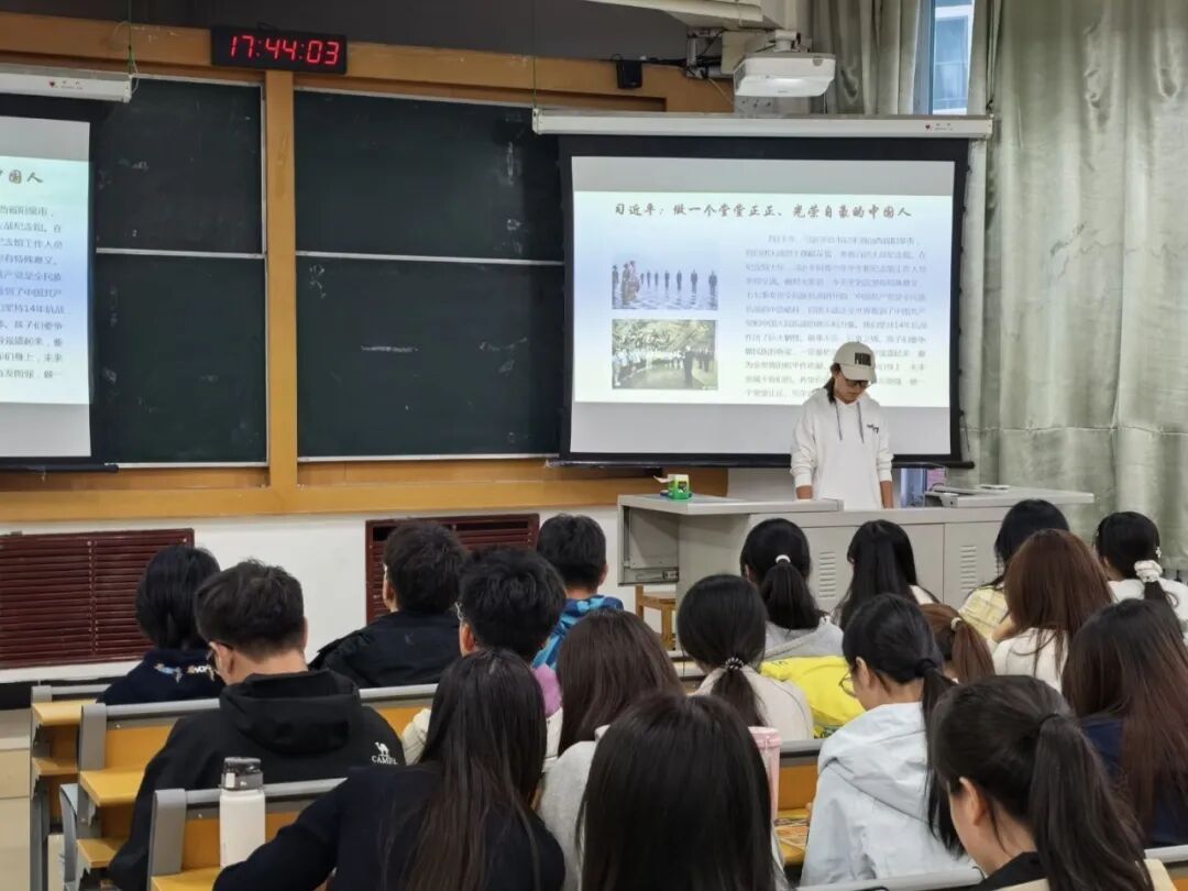 会上,全体成员共同观看了习近平总书记在山西考察的纪实视频,张淼溪讲述了习近平总书记在山西阳泉市向抗战烈士敬献花篮并参观百团大战纪念馆的事例,通过重温中国共产党领导抗日军民同仇敌忾、勇御外侮的光辉历史,同学们深刻领会到了弘扬伟大抗战精神的时代意义。之后,她带领大家学习了习近平总书记在阳泉考察制造业企业发展的重要讲话,让大家明白了先进技术和装备对工业发展的重要意义,要把握市场需求,加强科技创新,让传统产业焕发新活力。最后,她深入解读了习近平总书记提出的“做一个堂堂正正、光荣自豪的中国人”这一重要要求,呼吁广大青年应全力以赴、勇毅前行,做无愧于国家、无愧于时代的中国人。