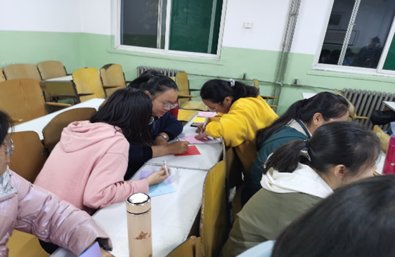 各团支部通过开展丰富多彩的活动,重温共青团历史,让团员们坚守初心使命,共创美好未来。其中,2001、2007团支部组织各团小组绘画团徽和国旗,强化团在全体团员心中的神圣感。2003团支部通过“你猜我画”、“关键词猜人物”等活动的开展,在活跃团日活动气氛的同时,也使全体团员对团史有了深刻记忆。2004团支部以团小组为单位讲述各自入团初心,并分享心得,使支部团员深刻认识到保留并坚守初心的重要意义。2002和2005团支部全体团员以朗诵《少年中国说》的形式,领会团课中的爱国情怀与奋斗精神。2006团支部团员齐唱团歌,使共青团印刻在每一位团员心中。