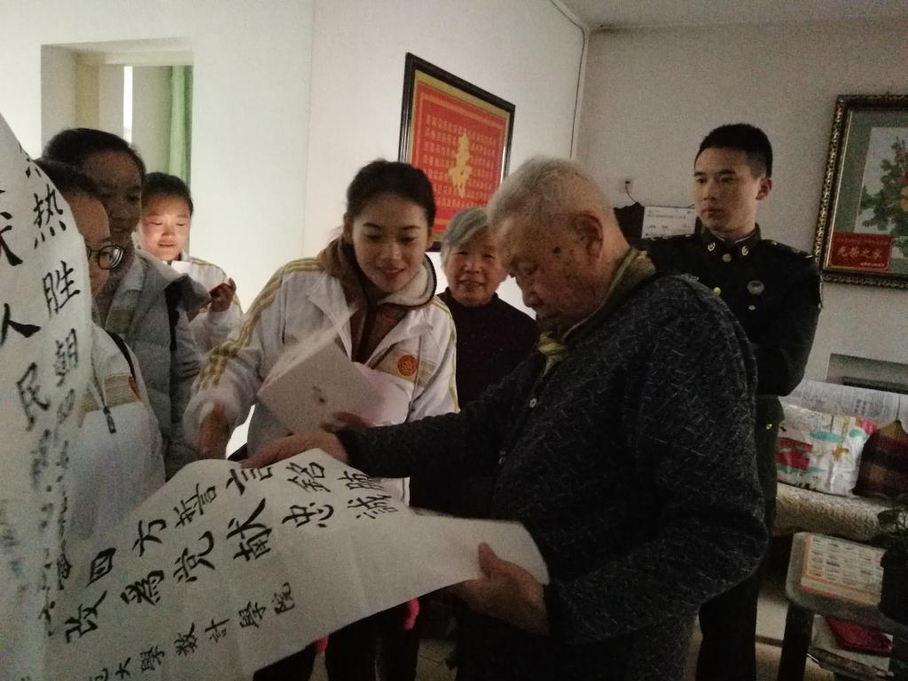 在干休所负责人的带领下,志愿者们分组进家户慰问老兵们,送上亲手制作的贺卡以及书法作品,聆听他们讲述抗战故事,重温民族记忆。老兵们虽年事已高,却精神饱满、声音洪亮地为员工们讲述那个烽火年代的故事,英勇无畏的精神感染了大家,也让所有人深刻地认识到当下幸福生活的来之不易。