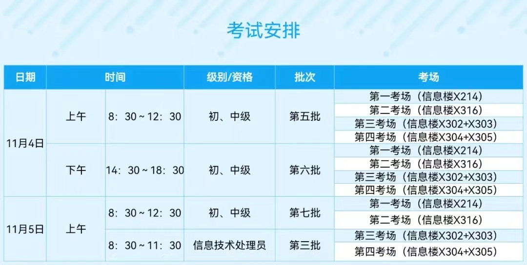 准考证打印:报名完成的考生于2023年10月30日9:00至11月4日9:00,登录中国计算机技术职业资格网打印准考证。网址:http://www.ruankao.org.cn/